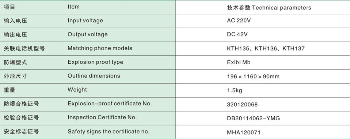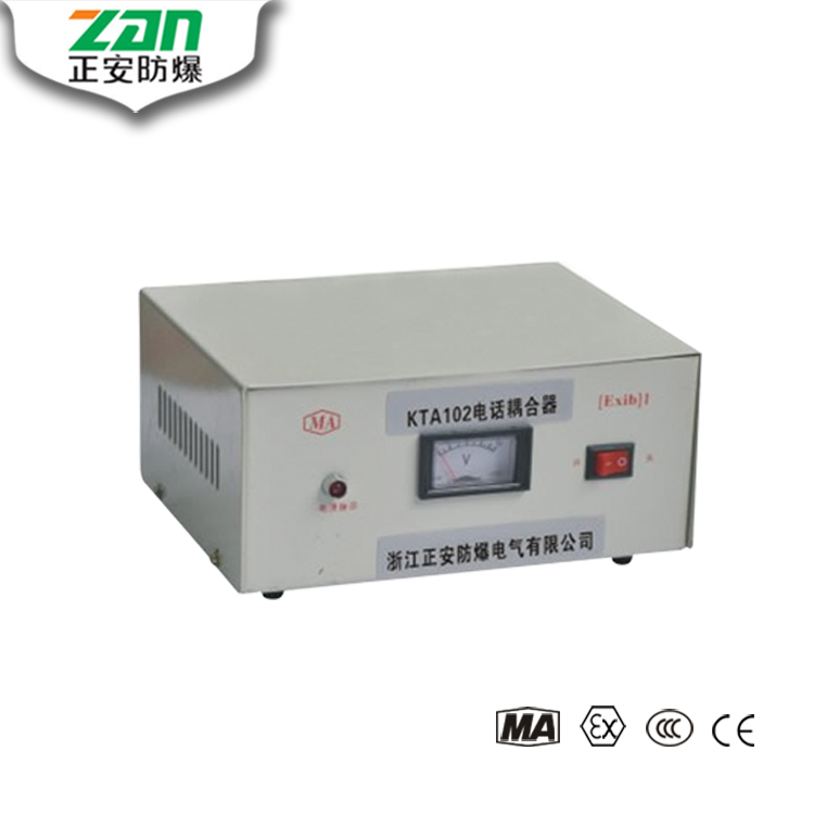 KTA102型電話耦合器,只能安放在地面房間里,通過電纜與地面或井下的本安型電話機連接成網(wǎng)。