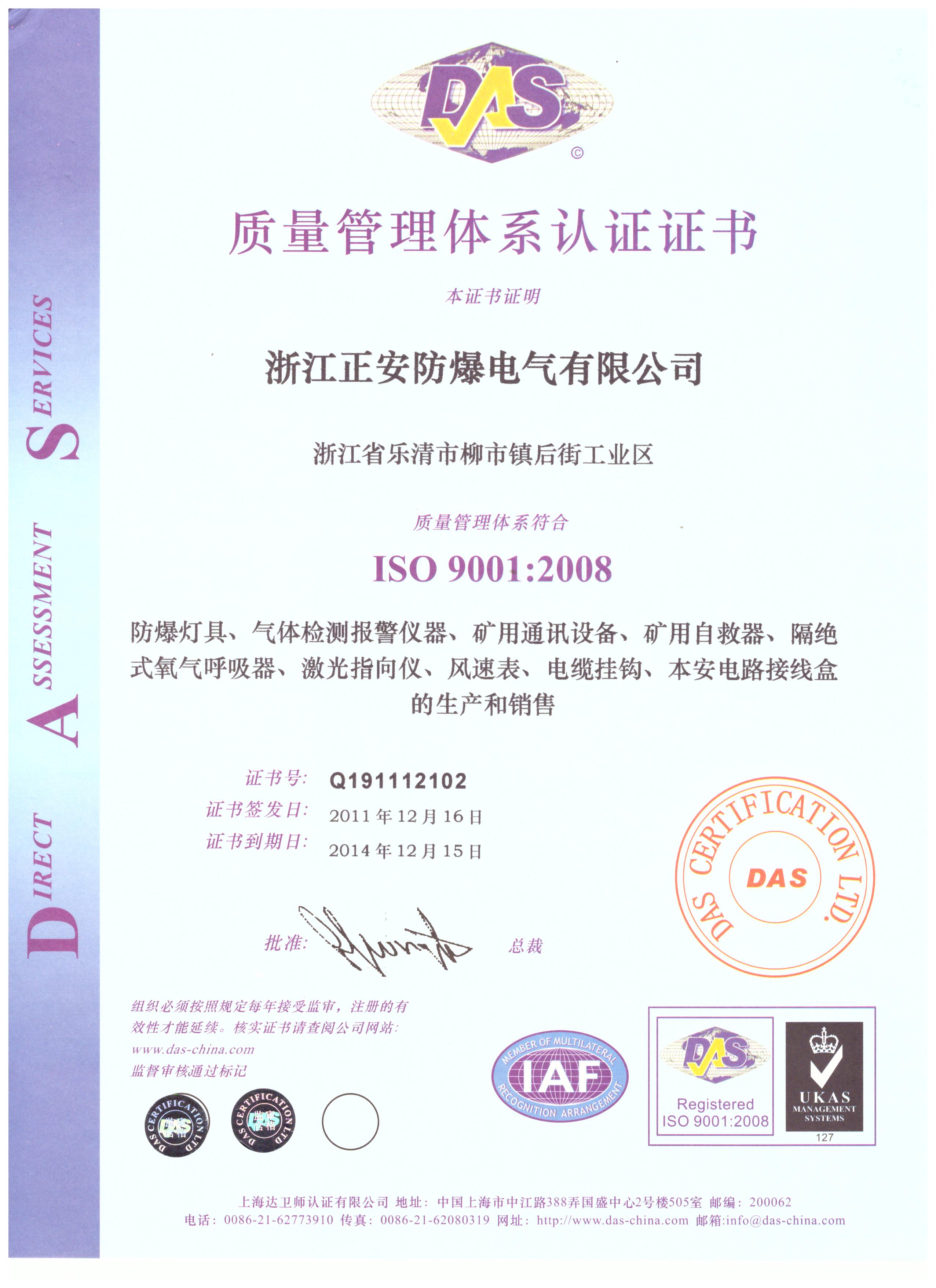 質(zhì)量管理體系認(rèn)證證書(shū) 中文