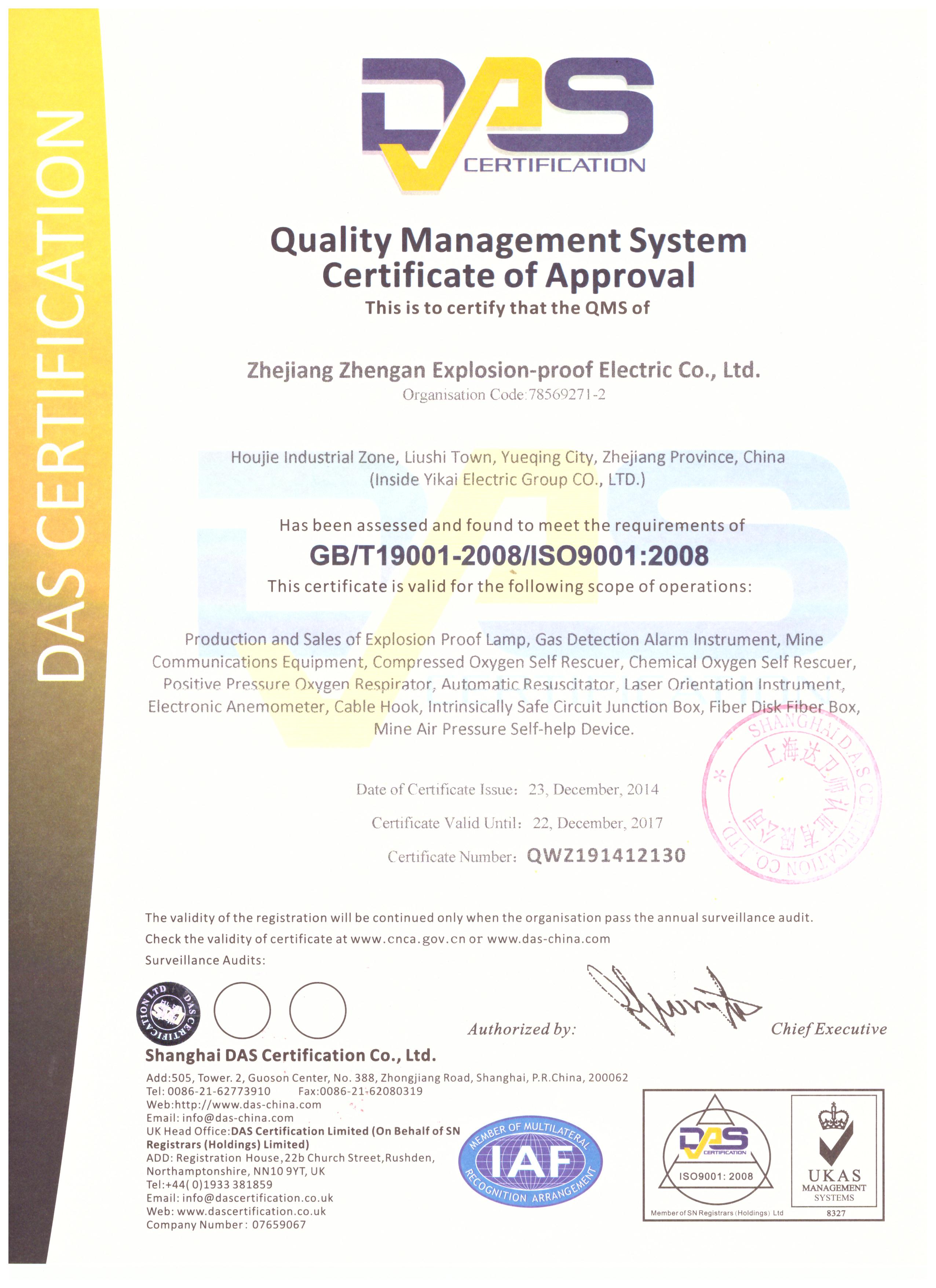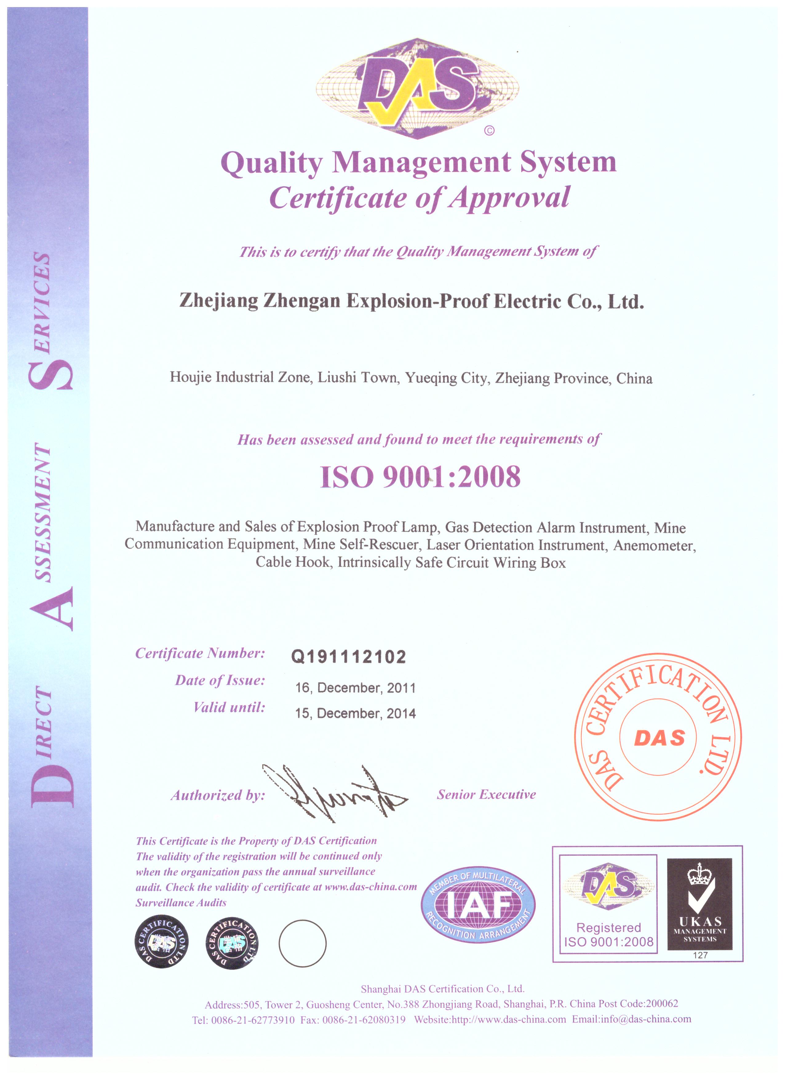 質(zhì)量管理體系認(rèn)證證書(shū) 英文