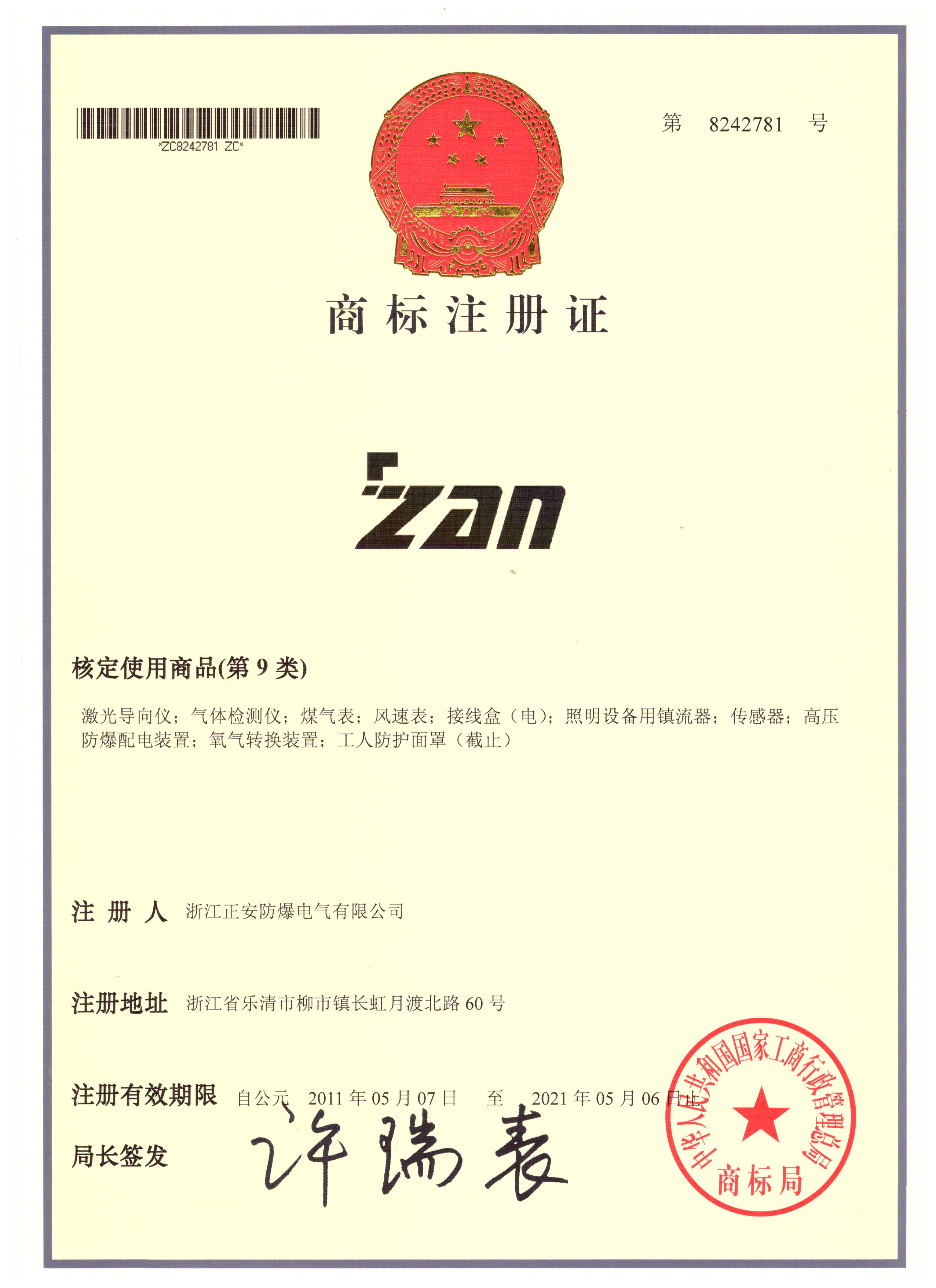 商標(biāo)注冊(cè)證書(shū)